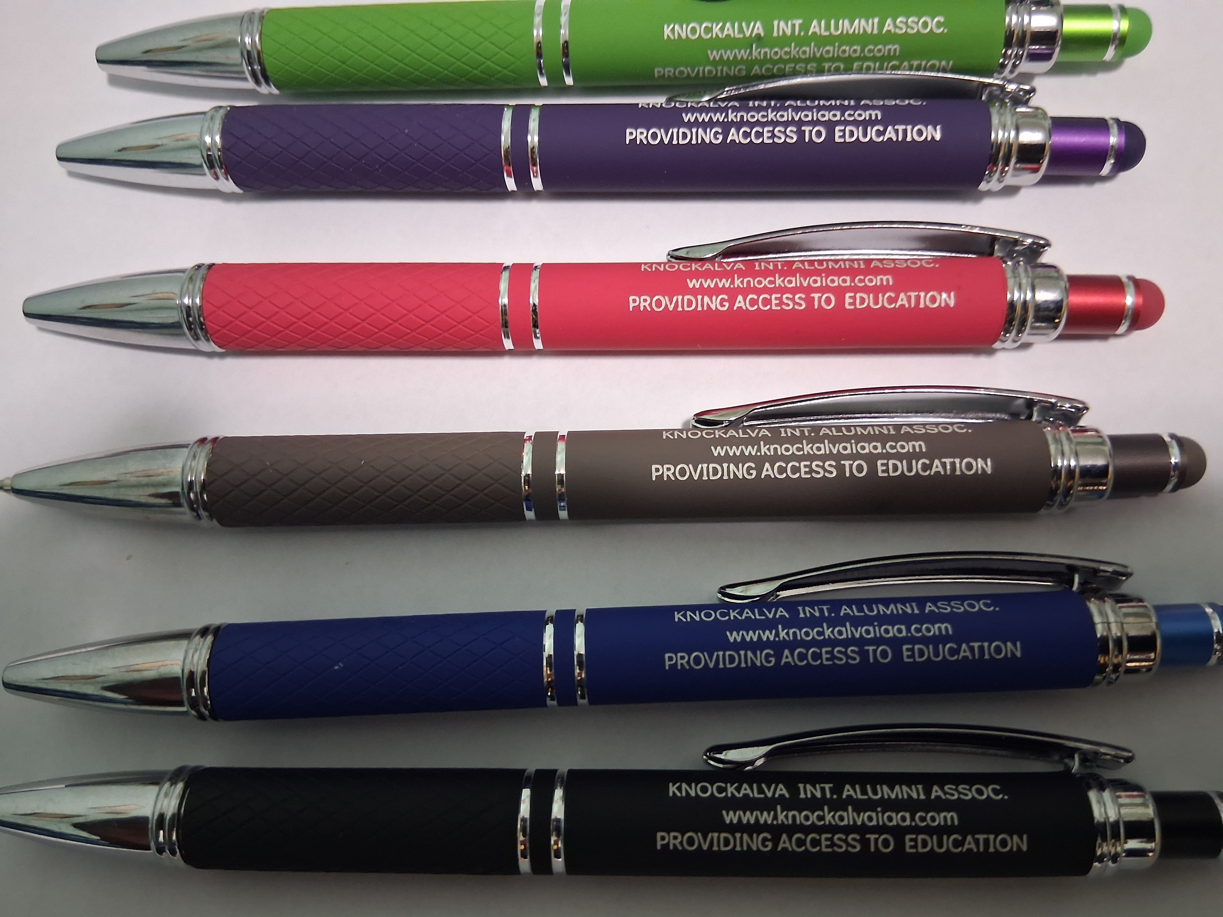 Knockalva engraved diamond stylus pens. Available in (6) different colors. Minimum order (10). Contribution ($3.00) each. Free shipping in the continental United States.